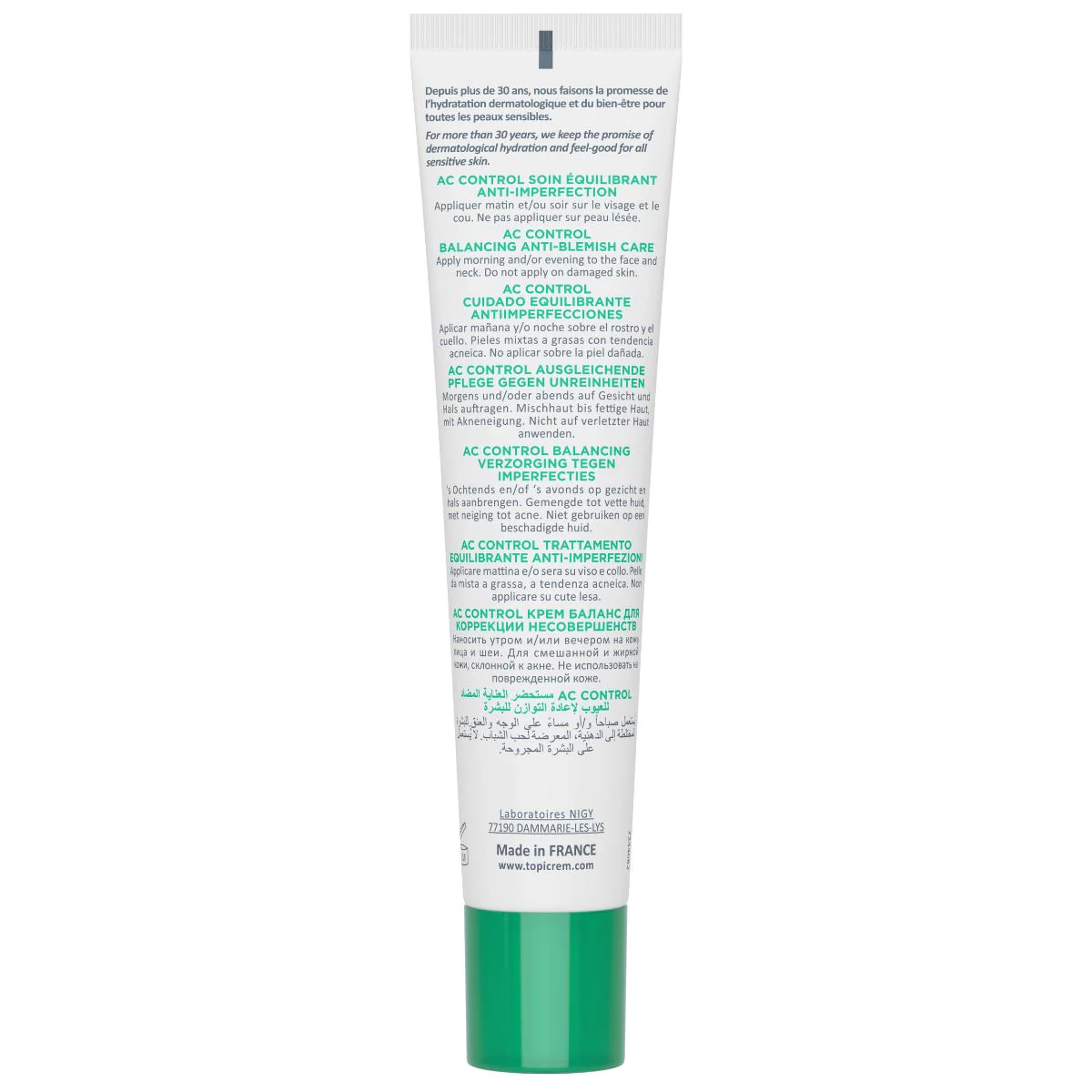 AC CONTROL Soin Équilibrant Anti-Imperfection pour les peaux mixtes à grasses corrige les imperfections et aide au maintien de l'équilibre du microbiome cutané avec une action prolongée même 2 semaines après l'arrêt*. Ce soin pour peau mixte à grasse est idéal en crème de jour et/ou de nuit. Sa texture parfumée légère et fluide pénètre rapidement et hydrate la peau pendant 24h**.